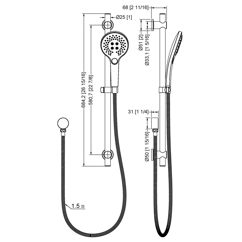 26 15/16"(684.21MM)Lifting rod and 1500MM 304 Stainless steel hoseEstándar :