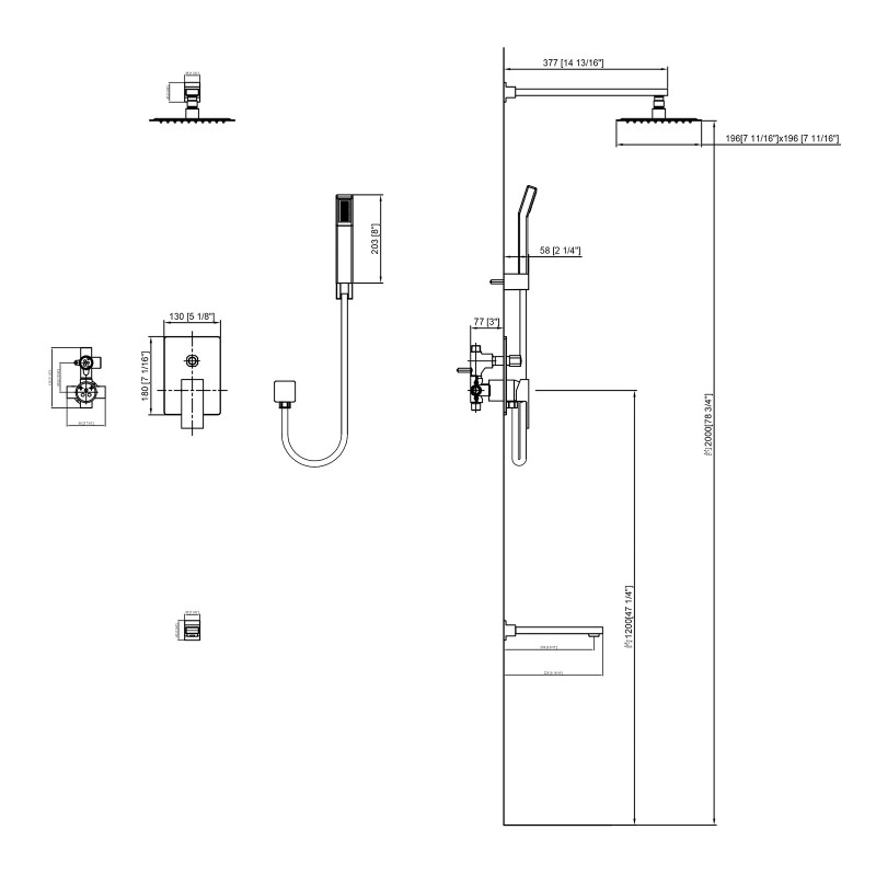 W14 13/16" H78 3/4" 8"Shower HeadEstándar :
