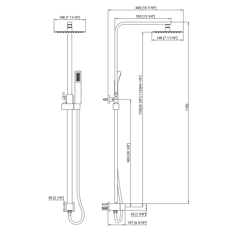 W18 7/16" H28 3/8" 8"Shower HeadEstándar :