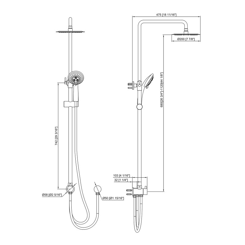 W18 11/16" H29 3/16" 8"Shower HeadEstándar :